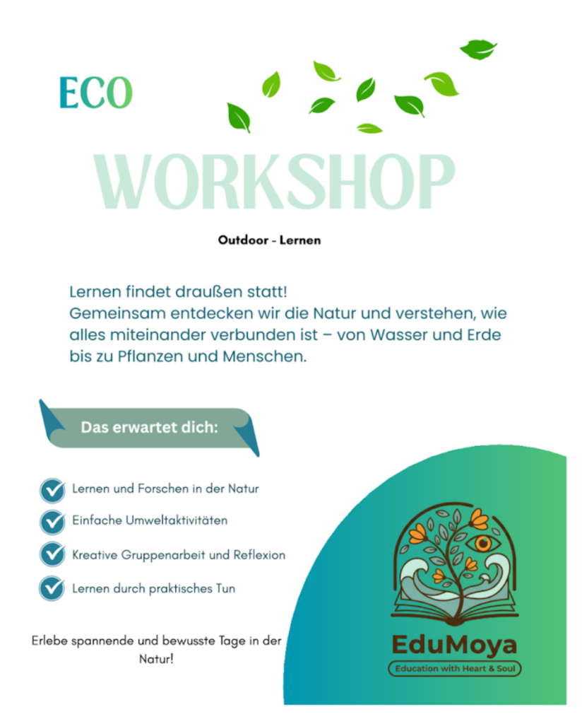 EduMoya Eco-Workshops stehen für nachhaltige Bildung, die berührt, verbindet und Wirkung zeigt – in der Natur, im Alltag und weit darüber hinaus.